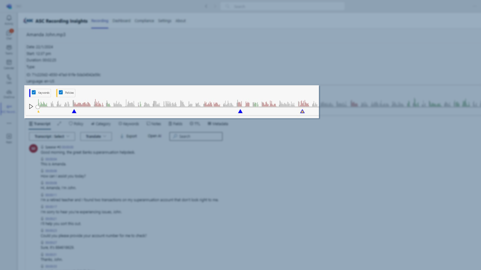 As financial institutions navigate the stringent requirements of RG 271, Recording Insights offers a sophisticated solution to enable compliance. Recording Insights is designed to record and archive communications across various Unified Communications (UC) platforms, including Microsoft Teams, Zoom, RingCentral, or Genesys. It captures all forms of media, such as voice, shared screen, chat, and meeting interactions, facilitating a comprehensive approach to managing and analyzing internal dispute resolutions, thereby aligning with RG 271's mandates for transparent and effective complaint handling processes.