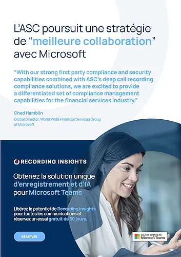 « Avec nos solides capacités de conformité et de sécurité de premier niveau, associées aux solutions de conformité d'ASC, nous sommes ravis de proposer un ensemble distinct de capacités de gestion de la conformité pour l'industrie des services financiers.»